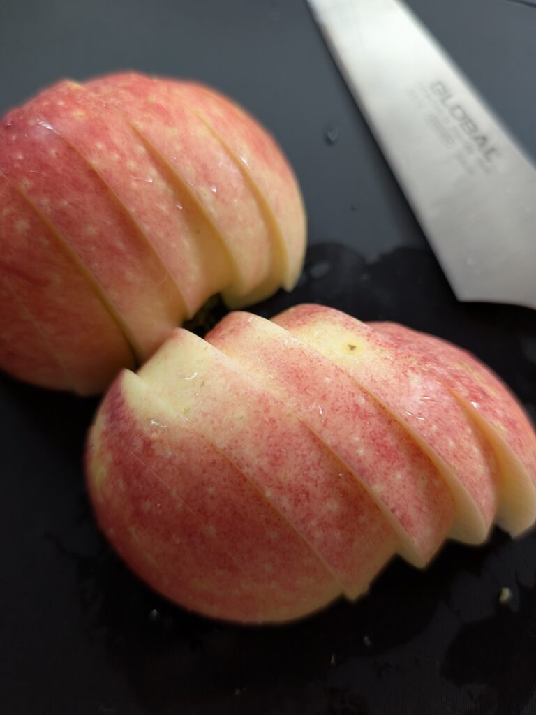 林檎を皮さら食べる我が家の切り方はこう🍎 どんなサイズ・硬度の林檎でも家族全員が食べやすい🍏 シナノリップを初めて買ったけど、ジューシーでデリシャスやね (*´ч`*)ンマー