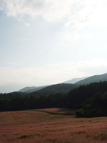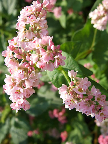 日本のそばの花は白色ですが、そばの原産地の雲南省からヒマラヤにかけては、ピンクや赤色のそばがあります。